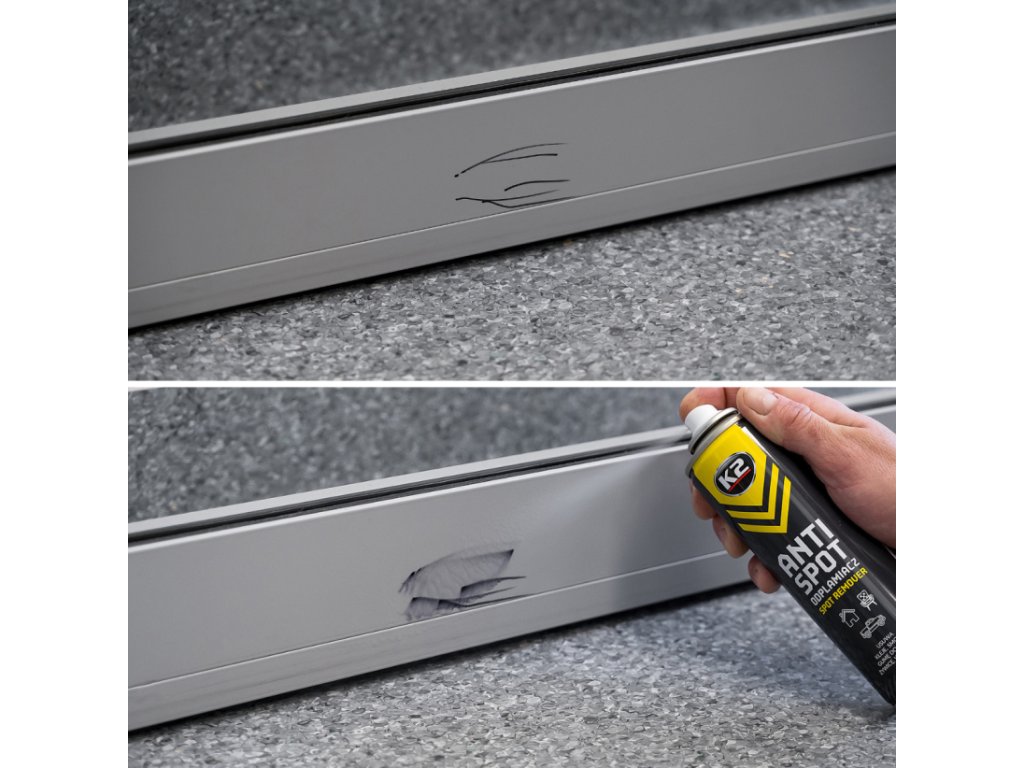 K2 Anti Spot je bezpečný pre PVC aj lakované povrchy. Stačí aplikovať, nechať pôsobiť a zotrieť.