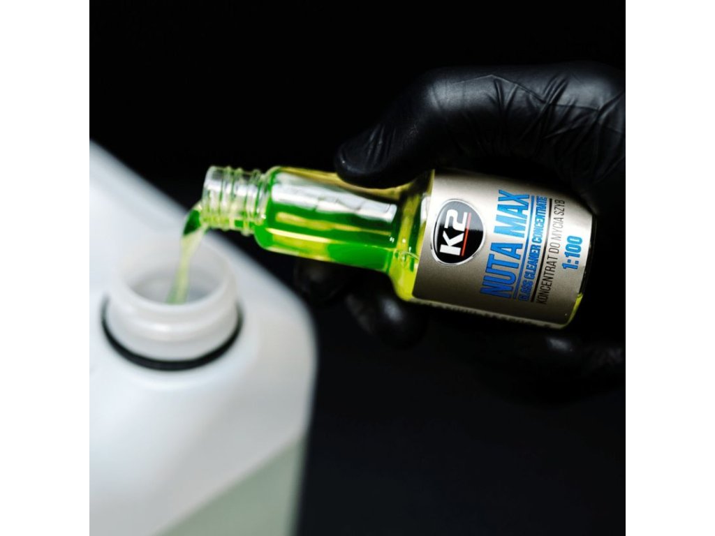 K2 Nuta Max 1:100 je vysoko koncentrovaný čistiaci prípravok určený na efektívne čistenie čelných skiel, okien, spätných zrkadiel a všetkých sklenených plôch. Vďaka mimoriadnej koncentrácii postačí len 50 ml na prípravu až 5 litrov silného čistiaceho roztoku. Prípravok možno riediť s čistou vodou alebo s hotovou kvapalinou do ostrekovačov. V prípade riedenia s vodou vznikne účinný čistič skiel, ktorý dokonale odstraňuje nečistoty bez zanechávania šmúh, škvŕn či fľakov. Pridaním koncentrátu do existujúceho ostrekovača výrazne zvýšite jeho čistiaci výkon, najmä pri odstraňovaní zvyškov hmyzu, cestného filmu a ďalších nečistôt.