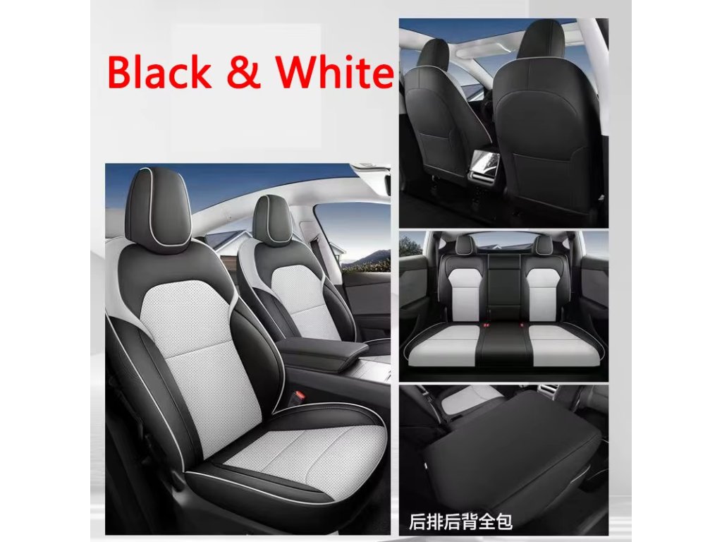Tesla Y Juniper Black & White full seat covers - kompletné poťahy sedadiel pre Tesla Y Juniper