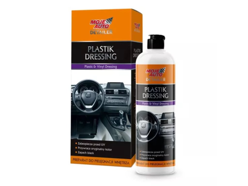Moje Auto Detailer Plastik Dressing je špecializovaný prípravok určený na ošetrenie a impregnáciu všetkých plastových a vinylových povrchov v interiéri vozidla. Slúži na ochranu, obnovu a dlhodobé udržiavanie matného vzhľadu plastov. Nie je to čistiaci prípravok, ale profesionálny dressing, ktorý zanecháva na ošetrenom povrchu jemnú ochrannú vrstvu s antistatickými vlastnosťami.