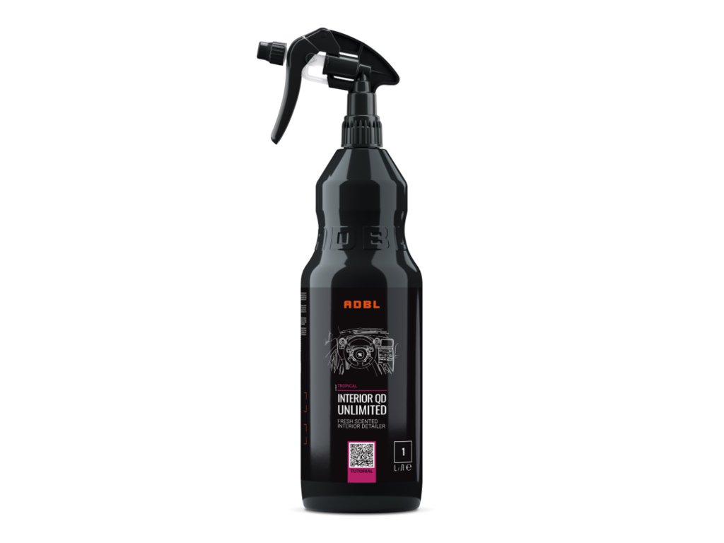 Interiérový detailer ADBL Interior QD Unlimited Interior QD Unlimited je detailer na čistenie všetkých interiérov áut. Osviežuje, odstraňuje drobné škvrny a obnovuje prirodzený vzhľad. Nezanecháva šmuhy na lakovaných plochách, nepridáva žiadny lesk a má antistatické vlastnosti. Všetky vnútorné plasty znovu získavajú svieži vzhľad v priebehu niekoľkých minút, zatiaľ čo UV filtre ich chránia pred starnutím a vyblednutím. Prácu vám spríjemní vôňa tropického ovocia. Hlavné vlastnosti Súčasťou balenia je špičkový japonský rozprašovač Canyon. Pomocou QR kódu na fľaši sa vám ukáže video s postupom. Vôňa tropického ovocia. Chráni proti UV žiareniu. Ako používať ADBL Interior QD Unlimited Pred čistením vykonajte skúšku na nenápadnom mieste. Nepracujte na slnkom rozpálených plastoch. Produkt naneste na povrch a po chvíli ho utrite mikrovláknovou utierkou. V prípade potreby tento postup opakujte. Nenechajte samovoľne uschnúť. Skladujte mimo dosahu detí! O značke ADBL je mladá, progresívna značka, ktorá sa vyrába v Poľsku. Vznikla v roku 2016 a dnes je jednotkou na poľskom trhu v predajnosti aj v obľube miestnych značiek. Vytvára cenovo dostupné produkty, ktoré sú spoľahlivé a vysoko funkčné. ADBL je jednou z mála firiem, ktorá realizuje sama celý výrobný proces – od nápadu, cez receptúru až po balenie. Ich produkty a príslušenstvo používajú fanúšikovia, profesionáli aj tí, ktorí kladú efektivitu na prvé miesto. ADBL ponúka extrémne široký výber v produktoch autokozmetiky a to ako chémie, tak aj najrôznejšieho príslušenstva vrátane leštičiek a kotúčov. Všetky spreje sú exkluzívne dodávané s rozprašovačmi od japonského Canyonu, ktoré sú právom označované za najlepšie na svete. ADBL drasticky investuje do vývoja a posúva sa vpred míľovými krokmi. Ahifi je oficiálny a jediný dovozca tejto značky do Českej republiky.Dodatočné parametre