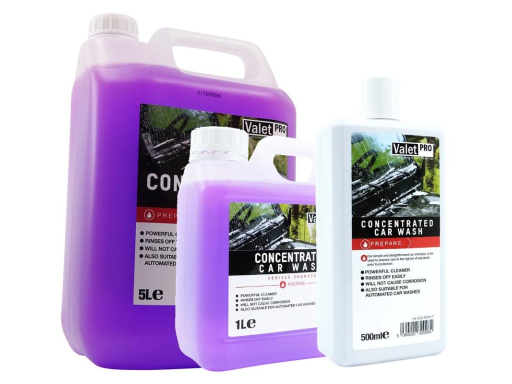 Ak potrebujete jednoducho umyť váš automobil potom je tento druh ValetPRO koncentrovaný šampón tou najsprávnejšou voľbou. Je vysoko koncentrovaný a dá sa zriediť až do pomeru 1:500. Tento koncentrovaný šampón na umývanie automobilov má neutrálnu hodnotu pH a nemá teda žiadne poškodzujúce účinky na jestvujúce voskové alebo sealantové ochranné povlaky.
